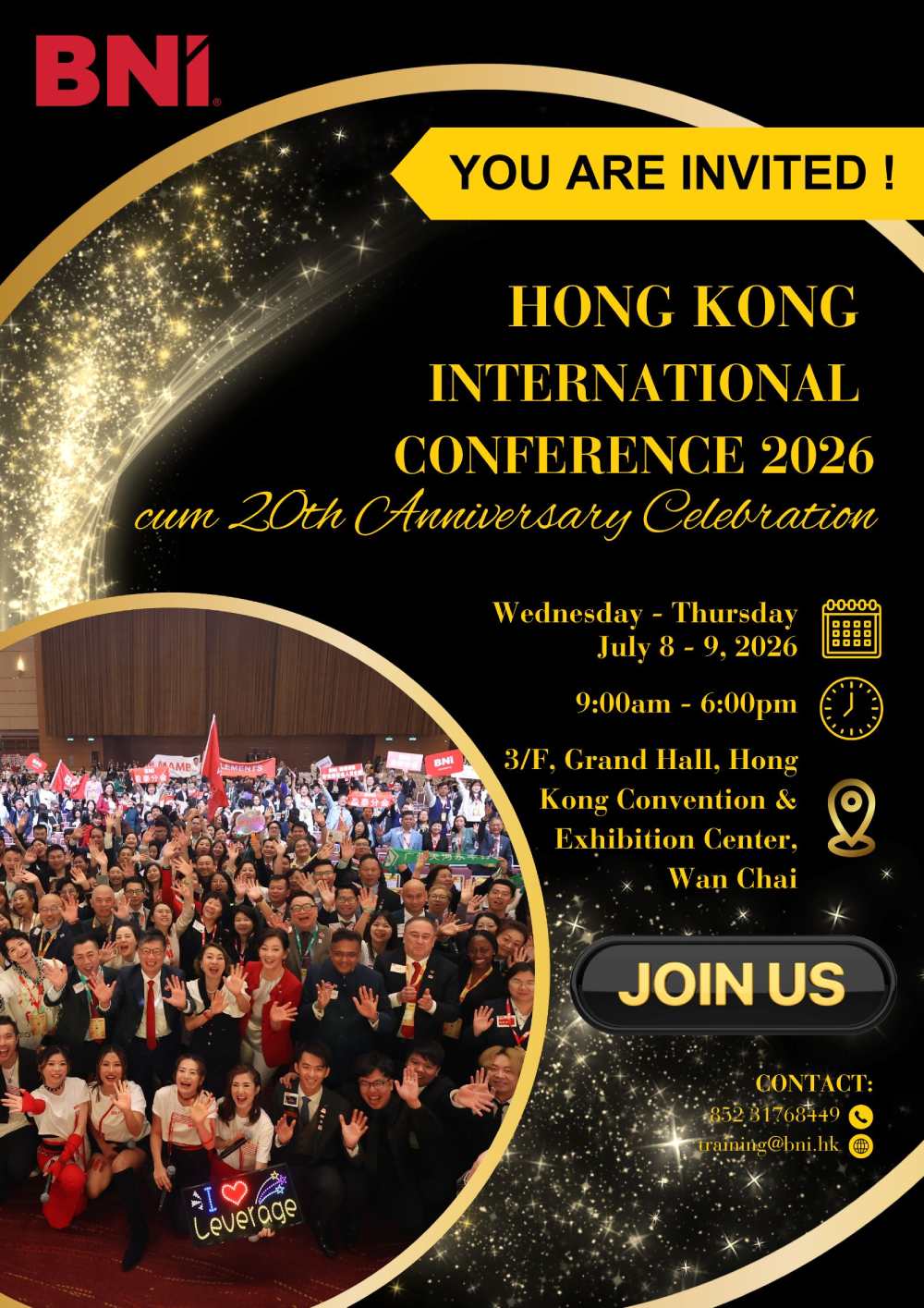 mon08jun(jun 8)11:13 amtue09(jun 9)11:13 amBNI Hong Kong International Conference 2026Grand Hall, 3/F, Hong Kong Convention & Exhibition Centre, Wan Chai, Hong Kong